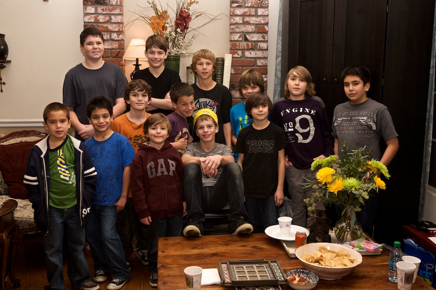 The families all came to our house for a party after the "Pow-Wow". This is only about half the kids that were there. Yes, there were a bunch of girls but I have no clue what they were doing. :)